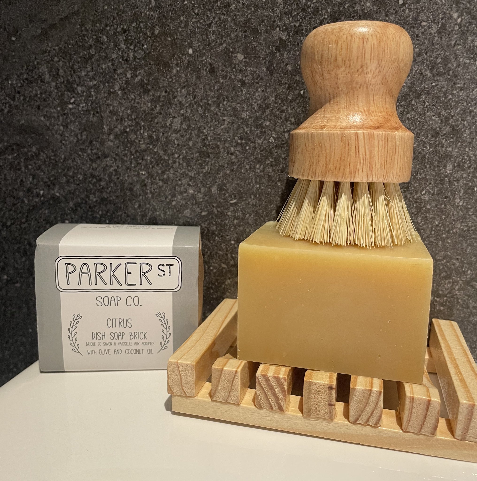 Meet your new dishwashing sidekick! This sturdy little wonder pairs perfectly with Parker Street's all-natural solid dish soap to tackle greasy pans and everyday plates with ease. Made from sustainable bamboo and tough plant-based bristles, it’s long-lasting, plastic-free, and totally planet-approved. Suds up, scrub down, and feel good knowing your kitchen clean-up just got a whole lot greener.
